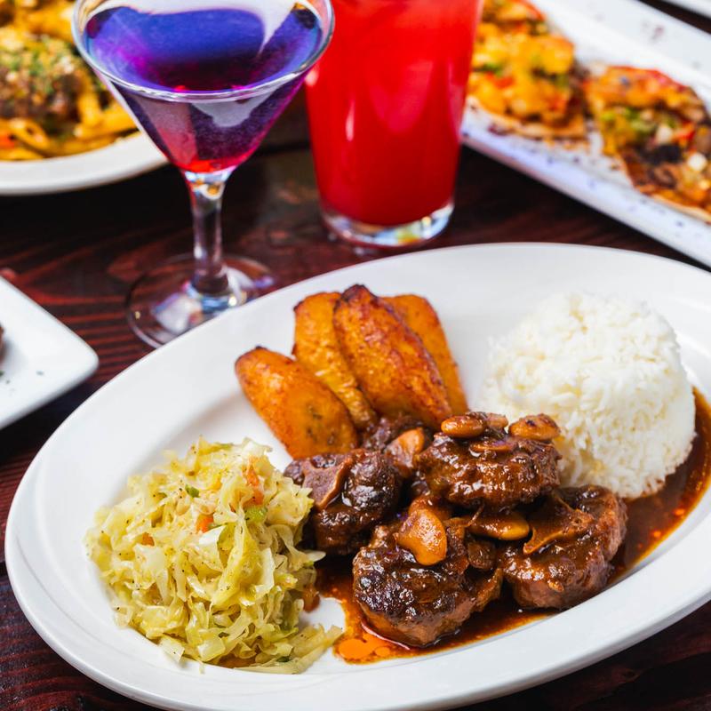 braised oxtails stewed in brown gravy and butterbeans. served with rice & peas, cabbage, and plantains